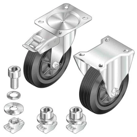 Durable Bosch Rexroth castor wheels designed for heavy loads on shop floors.