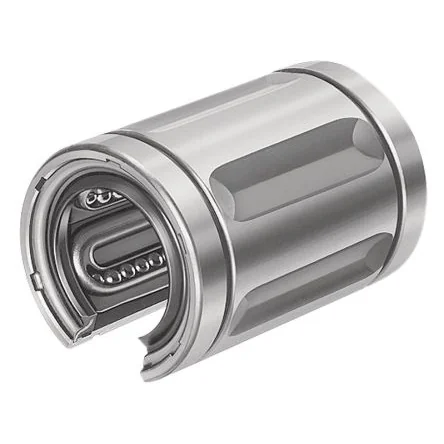 The standard linear bushing is extremely robust thanks to its steel ball retainer and designed for applications with a high level of soiling, such as woodworking. Standard linear bushings without seals are available for use at very high temperatures. The closed standard linear bushing is also available in stainless steel and is specially designed for applications under vacuum or in the food industry.For use in woodworking, foundries, cement plants Pockets collect any dirt that may have worked its way in to prevent the Linear Bushing from jamming. No wiper seals, come with integrated steel retaining rings, higher temperatures allowed with shaft diameters 12 and higher Hardened and machined outer sleeve Steel ball retainer Balls made of rolling bearing steel Rugged all-metal design with steel ball retainer for harsh environments and heavy contamination Seal-free and with steel ball retainers for temperatures well above 80 °C or vacuum applications