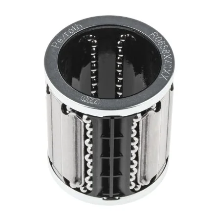 Load ratings stated are maximum values. Compact Ball Bushings with Seals - Series R0658. The Compact Linear Bushing is distinguished by its compact dimensions. Through the use of integrated metal locking rings, this type eliminates the need for the otherwise typical axial fasteners in the mounting hole. Also available in corrosion-resistant format. Low cost Linear Bushing for most applications Small overall dimensions for especially compact construction Easy assembly; just press in - no additional retention necessary Hardened steel segments with ball lubrication in the tracks for high capacity and long life span High travel speeds (5 m/s) Several cavities/ports serve as lubrication reservoirs for long lubrication Cavities can also capture invading dirt, preventing potential blockages Elastomer seals