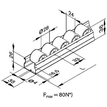 Bosch Rexroth Roller Track, 28mm Diameter, 24mm Width, 2000mm x 35mm - 3842993431/2000