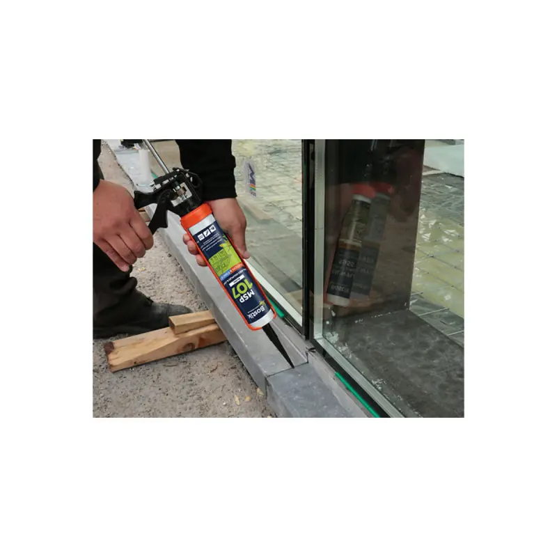 BOSTIK MSP 107 White Polymer Sealant and Adhesive for Wet Surfaces is ideal for the flexible bonding of elements that may be subjected to vibrations or shocks. Bonding of tiles, skirting boards, various decorative elements, pipes, and rainwater downpipes. And for expansion joints, contraction joints on concrete slabs, balconies, sealing under window sills, conservatories, and greenhouses. Sealing of masonry, partitions, wooden and metal frames, boats, caravans, and vehicle bodies.