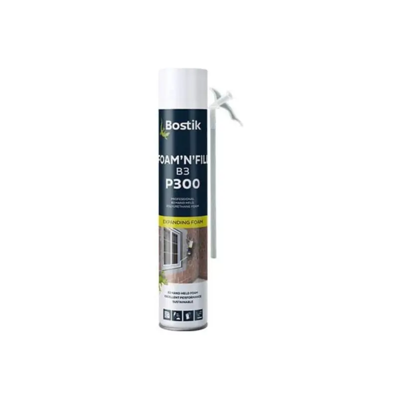 ThisBOSTIK P300 FOAM’N’FILL B3 - 500ml polyurethane foam is a single-component foam that allows you to fill cavities and pipe penetrations of all types in walls and floors to provide thermal and acoustic insulation. It is a product that offers excellent adhesion to concrete, stone, plaster, wood, metal, and many insulators such as expanded polystyrene (EPS and extruded (XPS)), rigid PU foam, and non-plasticised PVC.