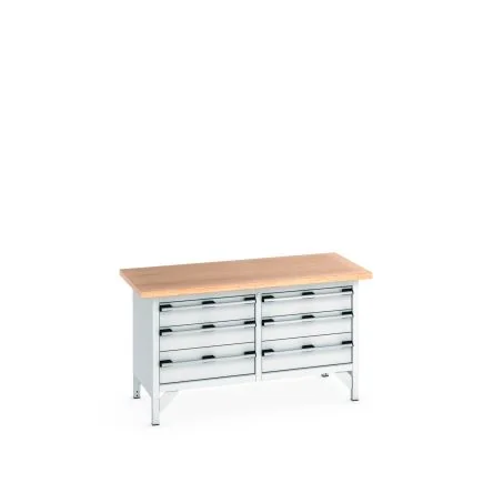 Sturdy Bott sheet steel workbench with dimensions 1500mm x 750mm x 840mm, ideal for storage.