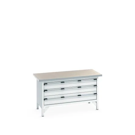 Sturdy Bott workbench made of sheet steel, measuring 1500mm x 750mm x 840mm, ideal for storage.