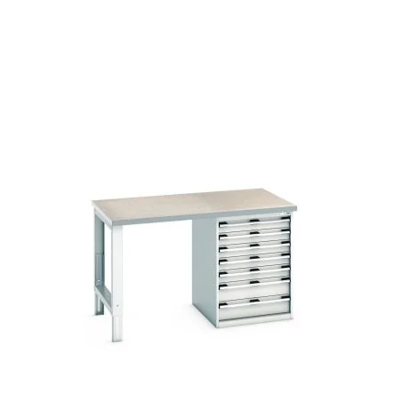 Sturdy Bott pedestal workbench made of sheet steel, measuring 1500mm x 900mm x 940mm.