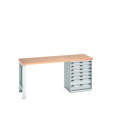 Sturdy Bott pedestal workbench made of sheet steel, measuring 2000mm x 750mm x 940mm.