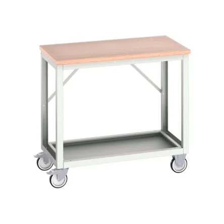 Durable and mobile steel workbench perfect for versatile workspace needs.