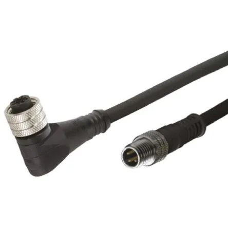 Durable M12 sensor actuator cable with right angle female to straight male connectors for reliable performance.