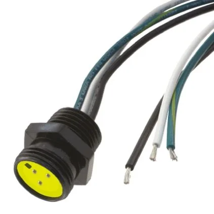 UL File N0.:E152210 CSA File No.:LR6837. Brad® Mini-Change® A-Size Female Panel Mount External Thread Receptacle + Lead. These Brad® Mini-Change® A-Size, female, straight, external thread Receptacles with Leads are front panel mount type. The Leads fitted to these Brad® Mini-Change® A-Size, female, straight, external thread Receptacles are PVC, 16 AWG to UL1061. Quad Beam contacts for high reliability and low resistance IP67 rated 1/2" - 14NPT mounting threads Shell is Zinc with black epoxy coat