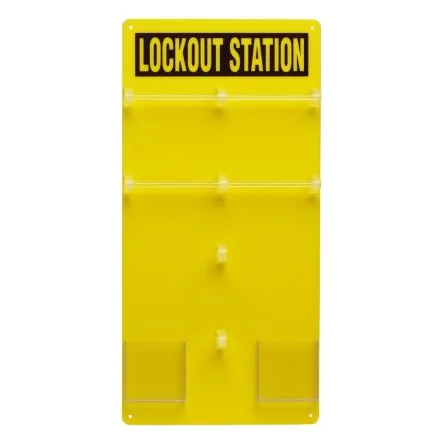 Brady Lockout StationThe Brady yellow lockout station is a high visibility lock board. It makes locks, tags and lockouts easy to find and use. It is made of durable plastic material. Note: Tags, padlocks and hasps are not included.Features and BenefitsStores up to 20 padlocks High visibility reminder Height is 597mm Width is 292mmApplicationsIndustries WarehousesCertificationsANSI/ESD S20.20:2014 BS EN 61340-5-1:2007