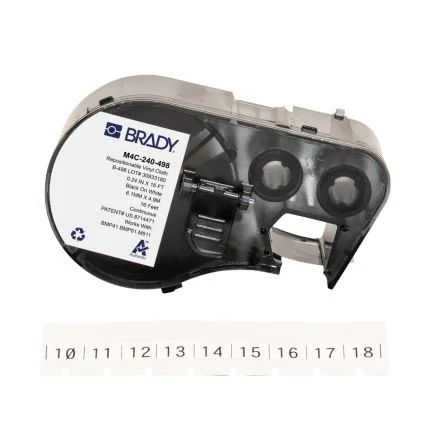 Durable black on white vinyl label for reliable printing with compatible Brady printers.