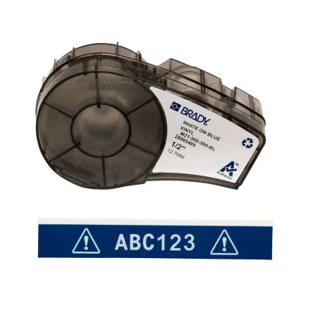 Indoor/Outdoor Vinyl Cartridge Labels. A Brady vinyl label which can be used indoor or outdoor which is suitable for thermal transfer printers. Made from permanent vinyl with an acrylic adhesive. These label markers are suitable for Building, Electrical, Healthcare and Laboratory Industries in applications such as general identification, laboratory identification, panel identification and plate. Adheres to irregular, curved or rough surfaces Stands up to grease, oil and most industrial chemicals 8-10 year outdoor durability in temperatures from -40°C to 82°C Can be applied at -18°C Ideal for pipes, round surfaces, tools, containers, bins, components, instruments and panels