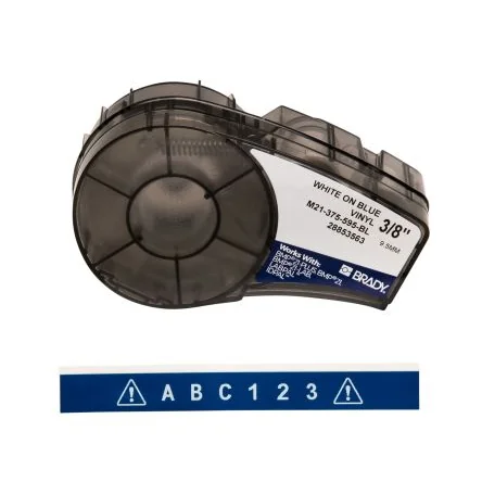 Durable vinyl label tape for indoor and outdoor use, perfect for various industrial applications.