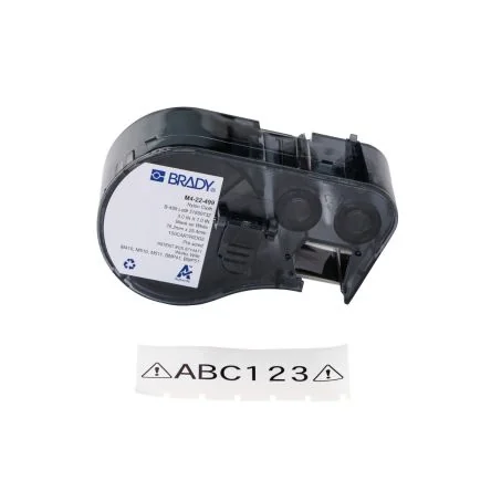 High-quality Brady B-7425 label roll for clear black on white printing.