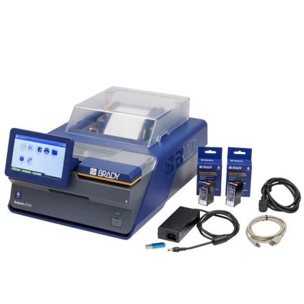 Efficient handheld label printer by Brady with a maximum label width of 107.95mm.