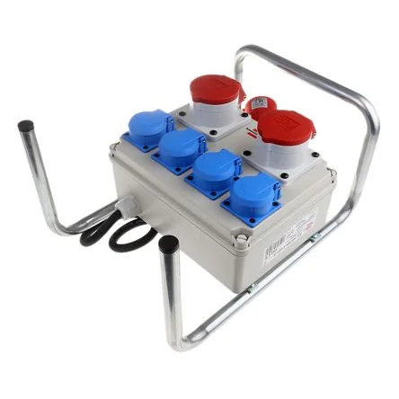 Brennenstuhl Free Standing Energy Station, CEE + Schuko. Small energy station IP44 Waterjet protected for outdoor use and on sites. Solid, break resistant plastic housing Fitted to a robust steel-tube frame for safe standing 2 m connecting cable H07RN-F 5G1,5 Separate earthed sockets for different phases Sockets: 2 x CEE 400 V/16 A, 4 x Schuko 230 V/16 A Plug: CEE 400 V/16 A, 5pin Weight approx 2,6 kg