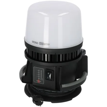 Powerful 12000 lm rechargeable LED work light with IP54 rating for durability.