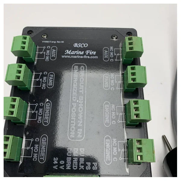 The BSCO Marine Fire V100017 is a high-quality and reliable fire extinguishing system specially developed for maritime applications. This system offers easy and safe use with a clear control panel, designed to quickly and efficiently detect and combat fires in the engine room or other parts of a ship. Thanks to its robust construction and water-resistant connections, the product is optimally resistant to the harsh conditions at sea.