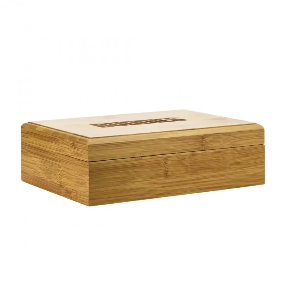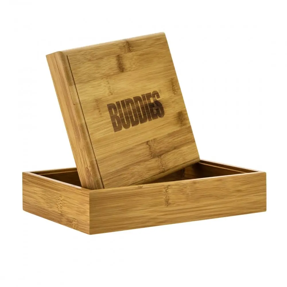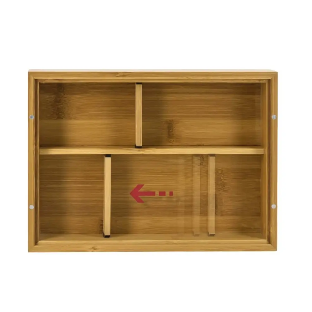 wooden storage box with 2 large compartments and 2 dividers to divide and have 4 smaller compartments.