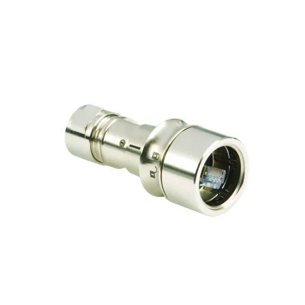 Reliable Bulgin Cat6a straight male Ethernet connector for panel mounting.