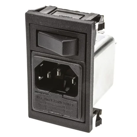 Reliable Bulgin male snap-in IEC filter rated for 6A and 250V AC, perfect for efficient power management.