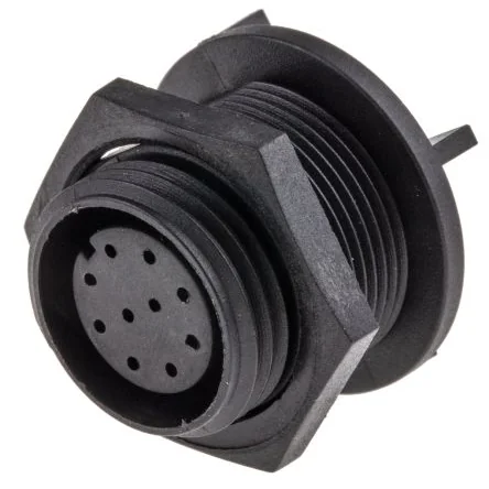 Durable IP68 rated miniature circular connector socket for reliable PCB mounting.