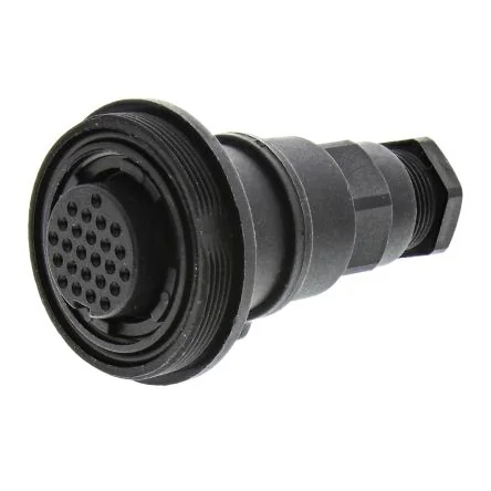 Durable Bulgin circular connector with 25 contacts, ideal for waterproof cable connections.