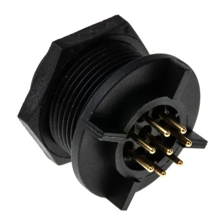 Durable Bulgin miniature circular connector with 8 contacts, ideal for challenging environments.