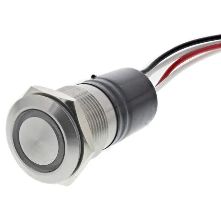 If the illumination voltage is not stated an appropriate resistor must be series connected by the user depending on the voltage for each colour as listed on the datasheet. Vandal Resistant Switches IP66. Manufactured from Stainless Steel, Bulgin ‘s range of vandal resistant security switches are designed with a high resistance to wear and tear. Available with Red, Green and Blue, dot and ring LED illumination Fitted with integral supply resistor for 6V, 12V and 24V variants Flying lead or 2.8 mm solder tag termination options Internal TVS protection Fully sealed to IP66 Overall length: 35mm + 300mm (flying leads), 32.7mm (2.8mm tags) Panel cut out; 19.2 mm