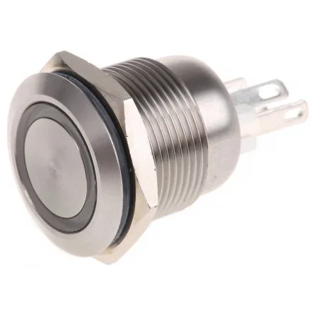 Durable illuminated push button switch with stainless steel body and bright LED illumination.