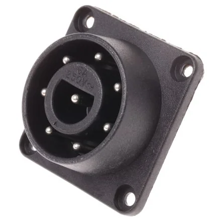 The following RS power connectors are suitable for direct connection to 240V a.c. mains unless otherwise stated. Care must be taken when choosing a product for mains connection. 8-Way, Non-Reversible, Low Power Polarised Plugs ; Sockets. 8-Way non-reversible plugs and sockets for low power applications found in lighting, theatre, heating and general industrial applications to enable safe interconnection coupling of equipment at mains voltage. Connector detail:. Cable plug stock no. ; 487-384 487-384 has 90° open cable entry Cable socket stock no. ; 294-9389 294-9389 has a 90° sleeved cable entry Chassis socket stock no. ; 487-378 487-378 has straight 4.8mm tab connections Chassis socket stock no. ; 294-9503 294-9503 has splayed 4.8mm tab connections Chassis plug stock no. ; 473-1809 473-1809 has solder spill connections
