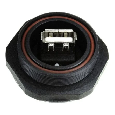 Durable IP68 rated USB connector for reliable data connections in harsh environments.