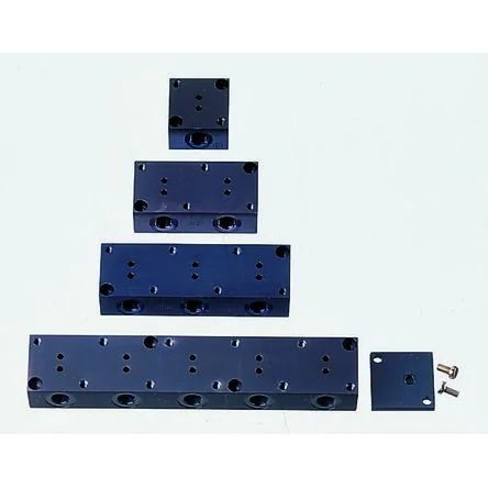 Large Solenoid Valve Manifold for Type 6014. Made from anodised aluminium Solenoids from either the 2-way or 3-way ranges may be mounted together on the same manifold Normally closed solenoid valves may be mounted on the same manifold Blanking plate, with plug and G 1/8 seal ring, to cover unused outlets, is available separately (stock no. ; 244-575 244-575 )
