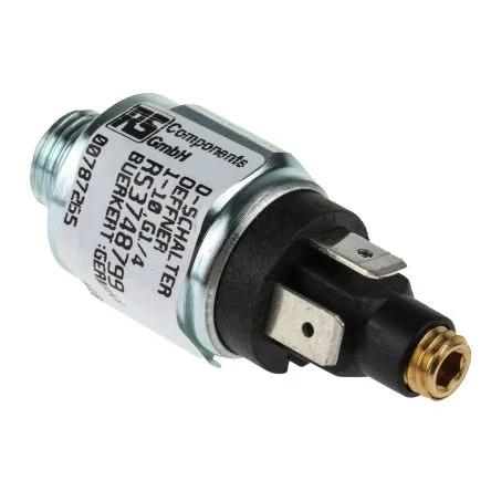 Pressure Switch, Robust. Simple and robust construction Adjustable switching point through headless screw Suitable for compressed air, hydraulic oil, oil emulsions, water Available as NO, NC or changeover