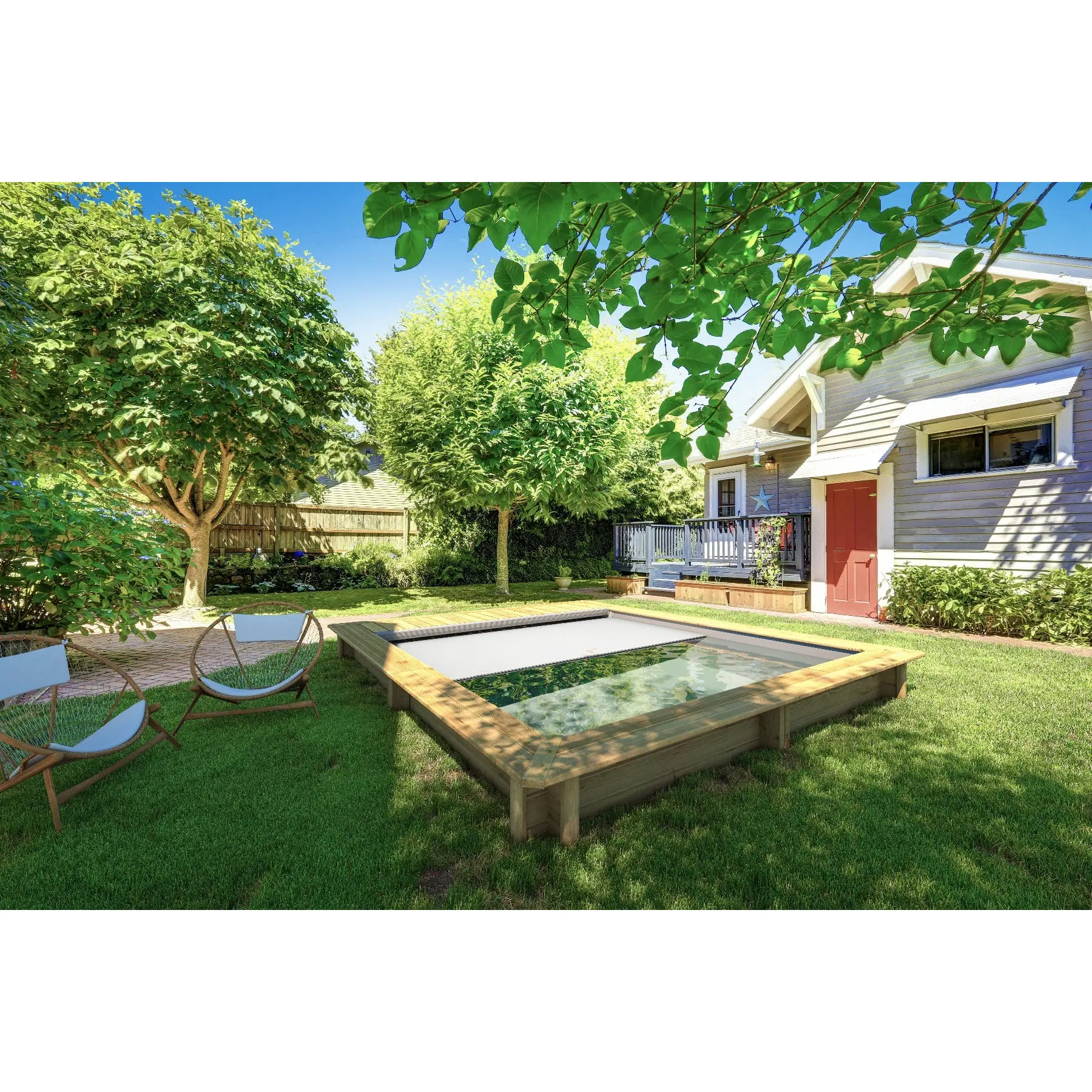 The first wooden pool with a submerged cover to secure your swimming area when not in use and protect it from the elements.