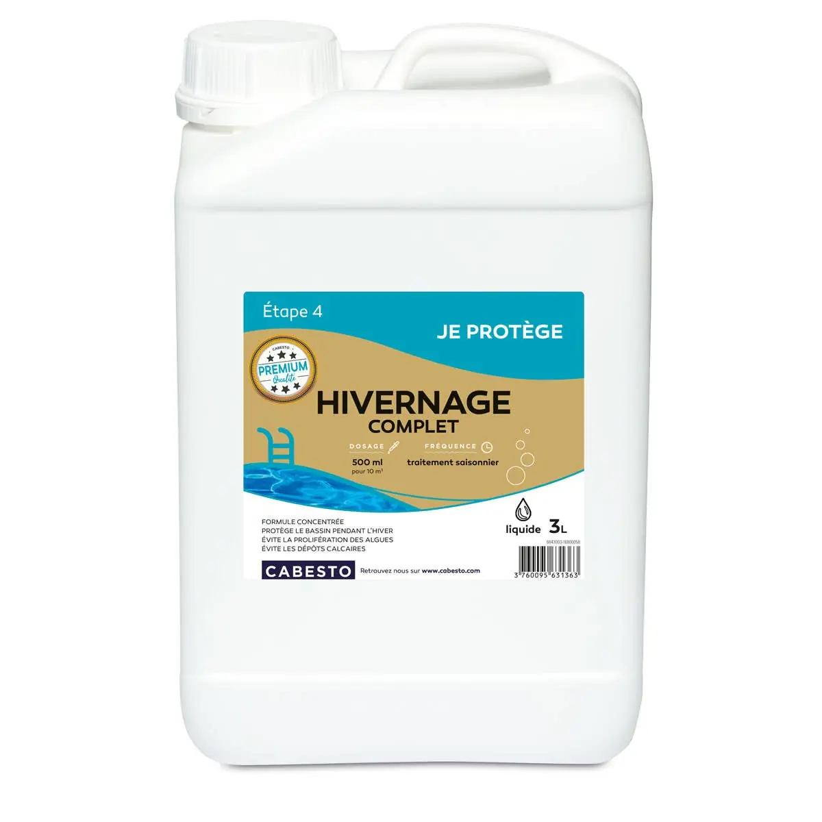 Complete Wintering 5L is a specialized anti-scale solution designed to protect swimming pools during the winter months. Its unique formulation ensures optimal preservation of pool surfaces and water quality.