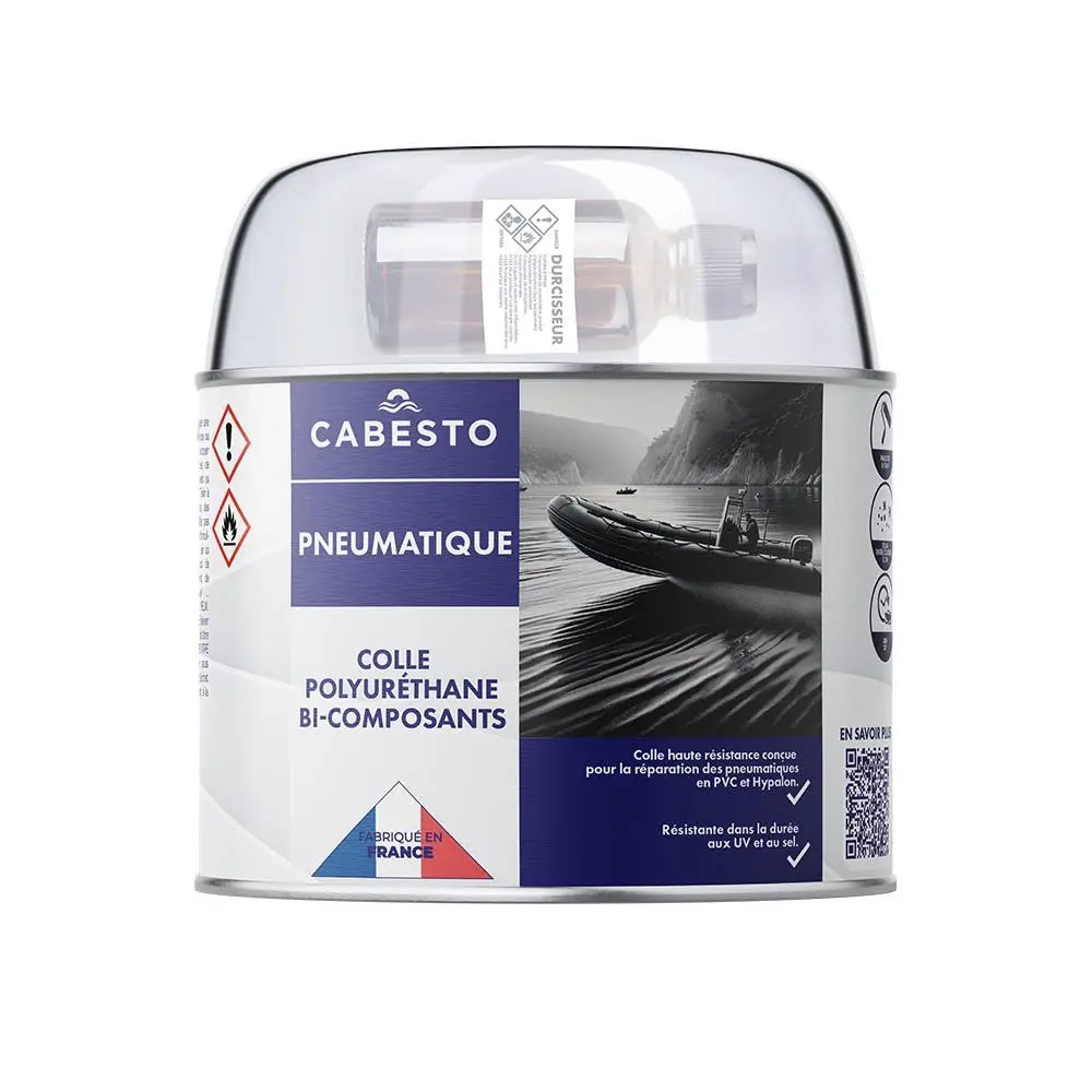 The CABESTO Two-Component Pneumatic Adhesive is a translucent, high-strength bonding solution specifically formulated for synthetic materials such as PVC and polyurethane. Ideal for repairing inflatable boats made of PVC, this polyurethane-based adhesive offers robust and elastic adhesion, making it suitable for both small and large bonding surfaces.