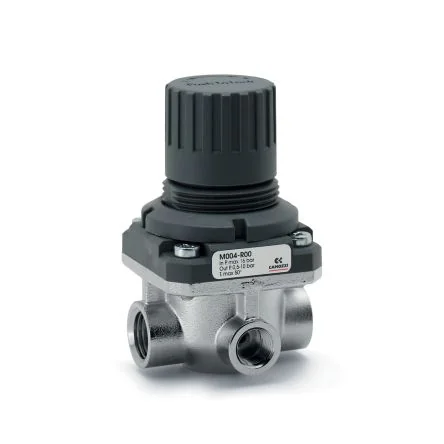 The Camozzi M004-R00 threaded regulator ensures precise outlet pressure control from 0.5 to 10 bar.