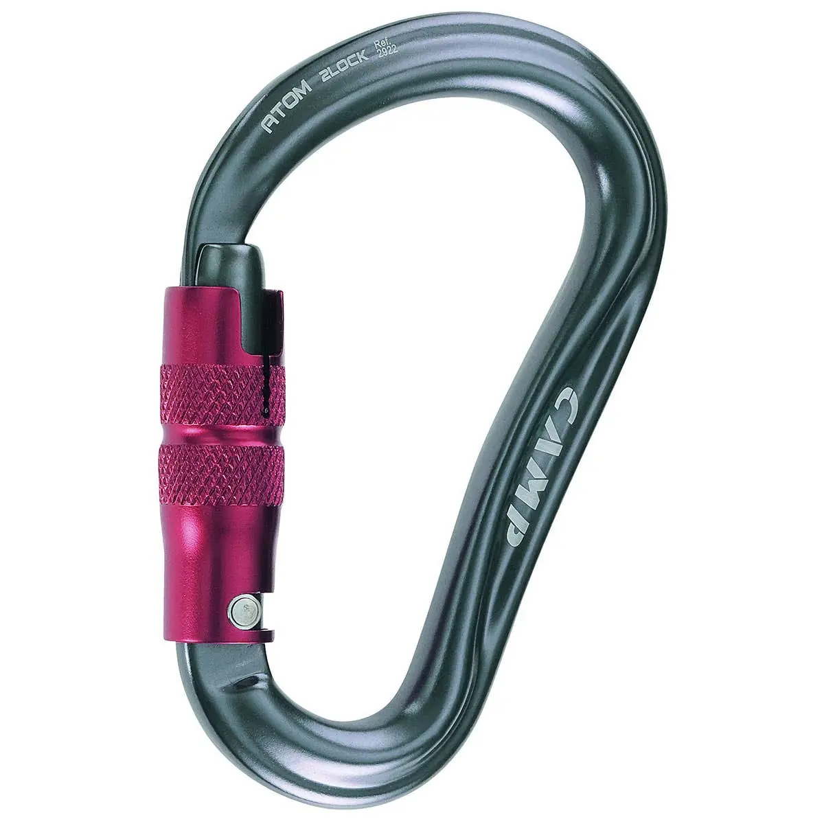 The CAMP Atom 2Lock is a high-strength HMS (Halb Mastwurf Sicherung) automatic carabiner designed for belaying and rappelling. It features a two-action twist-lock closure system that requires both a twist and a press to open, enhancing safety by preventing accidental gate openings. The carabiner's wide opening facilitates quick and easy clipping of ropes and webbing, while the patented SphereLock nose geometry minimizes the play between the gate and the body, ensuring a secure and smooth operation.