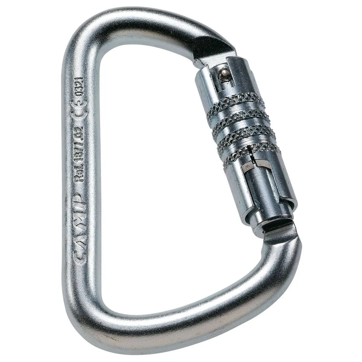 The C.A.M.P. Steel D Pro 3Lock Carabiner is a robust, D-shaped steel carabiner designed for high-strength applications, including climbing, rescue operations, and industrial use. It features a triple-action auto-locking gate that requires three distinct actions—slide, twist, and pull—to open, ensuring maximum security during use. The Keylock nose design prevents snagging, facilitating smooth clipping and unclipping.