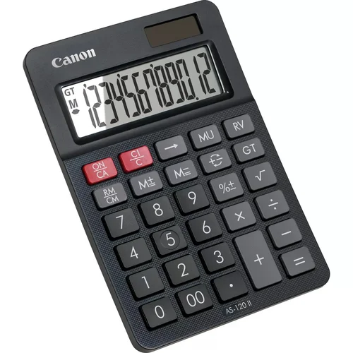 The Canon AS-120 II is a desktop calculator with a 12-digit display and grand total memory for easy calculations.