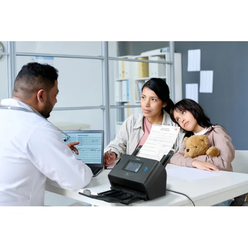 The Canon DR-S350NW scanner features a large color touch screen and 100ipm scan speed for efficient hybrid working.