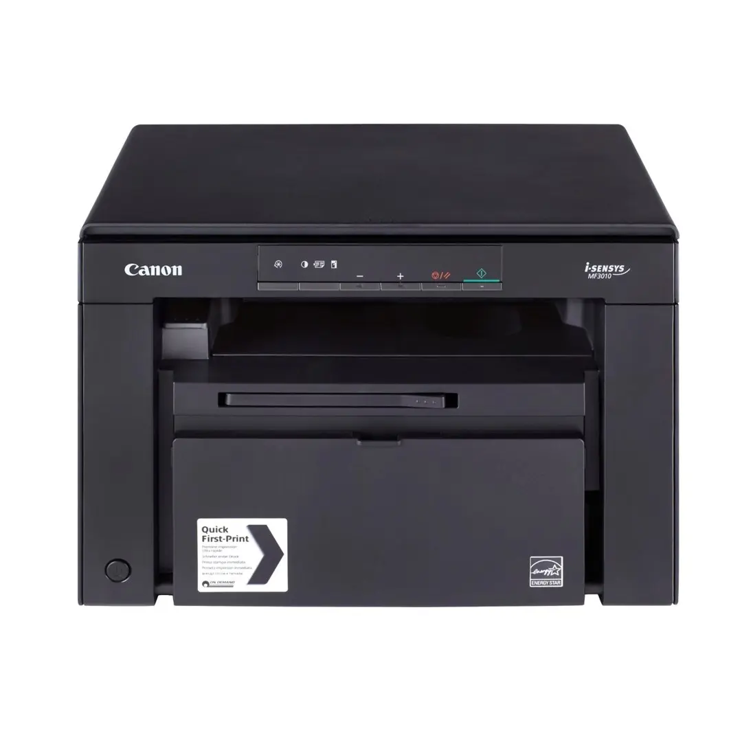 Make quick prints, copies and scans at your convenience, straight from your desktop with this compact mono laser printer. Ideal for home and small offices it’s easy to use and energy efficient.- Desktop Mono laser 3-in-1: print, copy & scan- Modern, eye-catching design- Easy to use vertical display- 18 ppm, 7.8 seconds First Print Out Time- Energy efficientUltra-compact, modern designThe sleek and stylish, all black design of the MF3010 makes it a very smart multifunctional laser 3-in-1. There’s a high-quality mono printer, scanner and copier in one space-saving unit. Fast and economic to run, this eye-catching compact device fits easily on the desktop. It is perfect for personal or small and home office users who want more than just a printer and are looking to save time and money.Easy to useYou can operate the MF3010 from the comfort of your chair, thanks to the simple, vertical display. This gives you convenient access to all the features you need without having to stand over the machine, saving you time and effort.Quality and speedBe sure of highly professional laser prints with up to 1200 x 600 dpi enhanced print resolution. This shows greater detail and produces sharp text and fine graphics. There’s little waiting time for documents, with a mono printing output speed of 18 ppm. Canon’s Quick First-Print technologies also means a fast First Print Out Time of 7.8 seconds. Versatile colour scanning and copyingIncrease your efficiency with the high quality colour scanner. It makes it easy to scan and copy your documents – instantly improving your productivity. There’s no hanging around with a First Copy Out Time of less than 12 seconds. You can also scan direct to email, or searchable PDF using the MF Toolbox, for quick retrieval of your documents and photos. Save energy and cut costsTruly economical, the MF3010 leads the way in energy efficiency, without compromising on performance – allowing you to save money as well as reduce your carbon footprint. The multifunctional device is Energy Star compliant with a Typical Energy Consumption (TEC) of 0.6 kWh. In sleep mode it only consumes 1.4 watts of energy. All-In-One cartridgeFor maintenance-free operation and a continuous high quality output, all essential parts are housed in the same compact cartridge. This All-In-One cartridge, containing toner, drum and cleaning units, is easily and cleanly replaced in seconds. Use an Authentic Canon Laser Cartridge and your multifunctional device is as good as new.