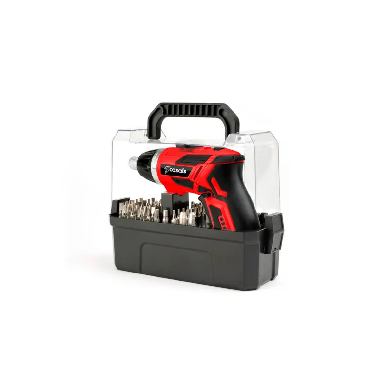 The CASALS screwdriver is designed to provide optimal user comfort. Its lightweight and ergonomic design allow for easy handling, reducing fatigue during long working sessions. Moreover, it comes with a practical storage case, enabling you to keep your accessories organized and within reach. The various included accessories, such as interchangeable bits, expand the possibilities of use, making you capable of performing a multitude of tasks ranging from furniture assembly to appliance repair.