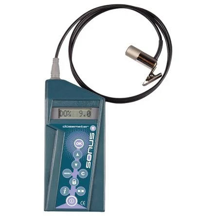 Accurate noise dosemeter measuring sound levels from 75dB to 140dB for workplace safety.