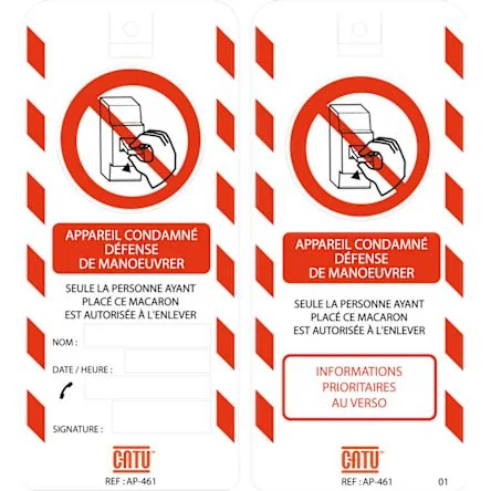 - Catu AP-4 Series Red, White Safety Prohibition Tag, French Language - AP-461