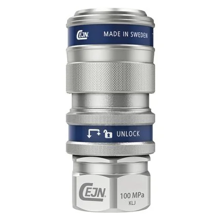 High pressure CEJN hydraulic coupling with compact design and non-drip functionality.