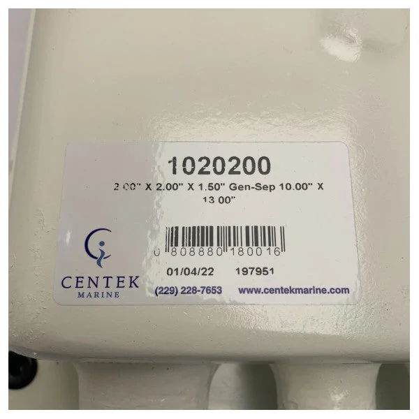 Enjoy the peace on the water with the Centek Generator Exhaust Separator 2 inch - 1020200. This high-quality water separator effectively reduces the noise from your generator exhaust, allowing you and your neighbours to enjoy a tranquil environment.