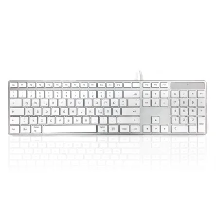 Ceratech KYBAC301-UCMACGR Wired USB Multimedia Keyboard, QWERTZ (German), Silver, White