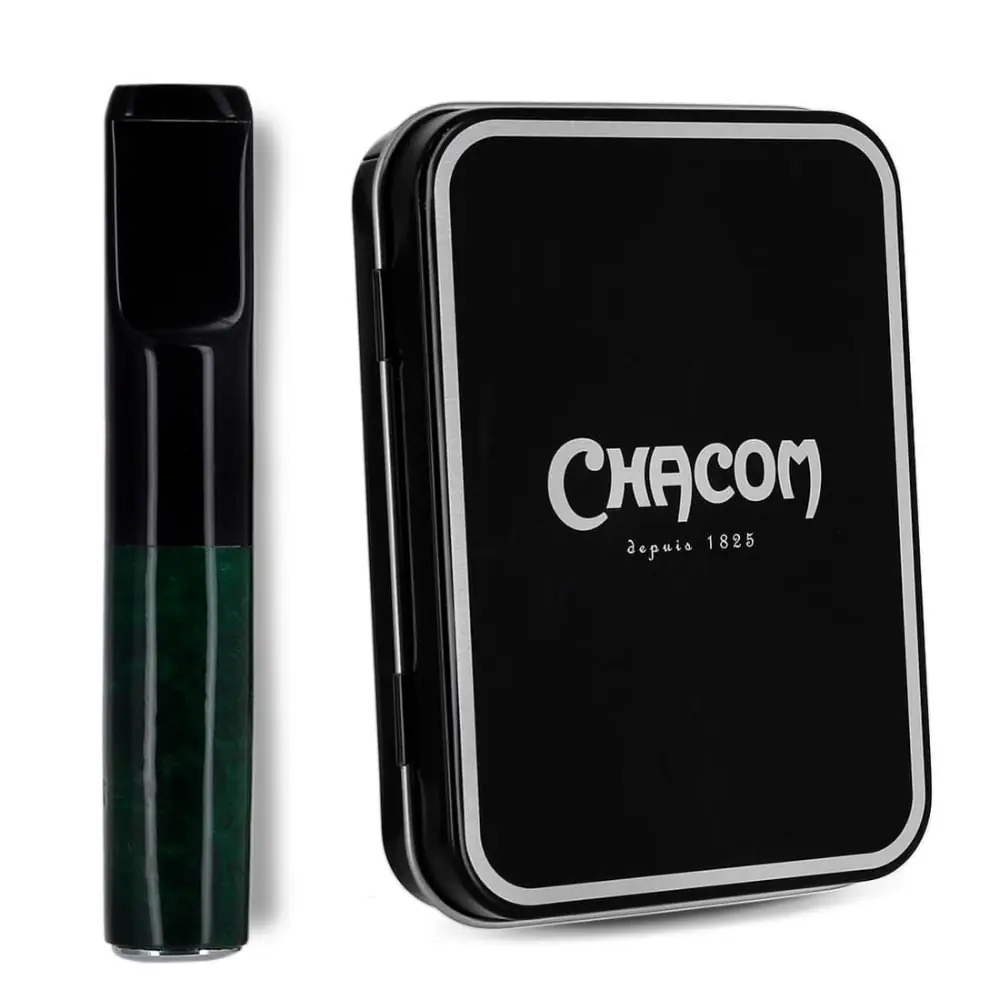 Acrylic cigarette holder pipe. Body in metal and briar. Compatible with king size cigarettes (classic size).